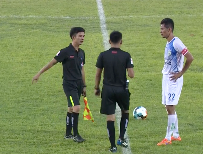 | Trọng tài đúng khi không công nhận bàn thắng Ở tình huống Văn Quân đá phản lưới nhà, trọng tài chính Lê Đức Thuận không công nhận bàn thắng và chỉ cho chủ nhà Bình Phước hưởng quả phạt góc. Quyết định này gây tranh cãi. Cựu phó Ban trọng tài VFF Đoàn Phú Tấn cho rằng trọng tài Thuận đã xử lý đúng. "Luật quy định bàn thẳng chỉ được tính từ quả đá phạt khi bóng đưa vào lưới đối phương. Trong trường bóng đi thẳng vào lưới đội nhà, đối phương được hưởng quả phạt góc. Luật không cấm chuyền bóng vào trong khu vực cấm địa từ quả phạt. Khi đó, thủ môn phải chơi bóng bằng chân. Trong trường hợp thủ môn chủ định đỡ, nhưng bóng vẫn đi vào lưới, thì bàn thắng được công nhận", ông Tấn phân tích. |