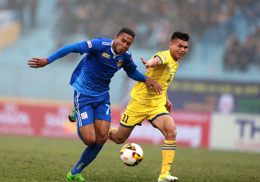 Các trận đấu V-League vẫn được trực tiếp trên sóng truyền hình (ảnh Vũ Vy)