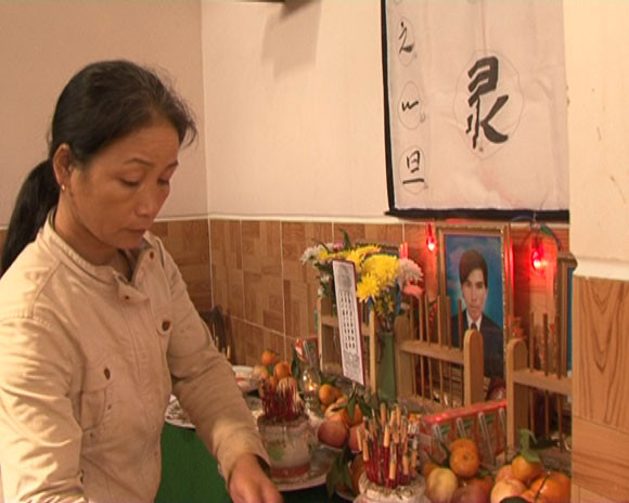 Sau gần 2 tháng kể từ khi mất tích, chúng tôi trở lại ngôi nhà của thuyền trưởng Trần Tiến Dũng ở thôn Châu Thuận Nông, xã Bình Châu, huyện Bình Sơn, tỉnh Quảng Ngãi, chủ tàu cá mang số hiệu QNg-90789TS bị mất tích cùng với 13 thuyền viên. Không khí tang thương, cô quạnh đang đè nén lên cả tinh thần và thể xác của chị Lê Thị Mai vợ anh Dũng. Cùng một lúc chị đã lập bàn thờ cho chồng và cả 2 con trai. Nỗi đau tột cùng vì nhớ chồng, nhớ con khiến chị lúc nào cũng quấn bên 3 di ảnh trên bàn thờ.