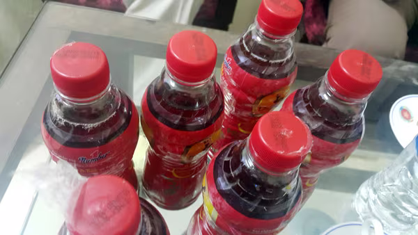 Vỏ ni-lon bọc ngoài lốc sản phẩm bị nóng chảy bám chặt vào nắp chai