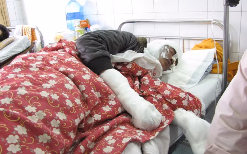 | Bác sỹ Nguyễn Thống, trưởng khoa Bỏng, Bệnh viện Xanh Pôn xác nhận, 3 nạn nhân nhập viện trong tình trạng sốc bỏng. Hiện hai nạn nhân đang trong tình trạng nguy kịch, một người bị bỏng diện tích lên tới 60%, một người bỏng 35%, người còn lại bỏng 25% cơ thể. Bệnh viện đang thực hiện cấp cứu bằng phương pháp giảm đau và chống sốc. |