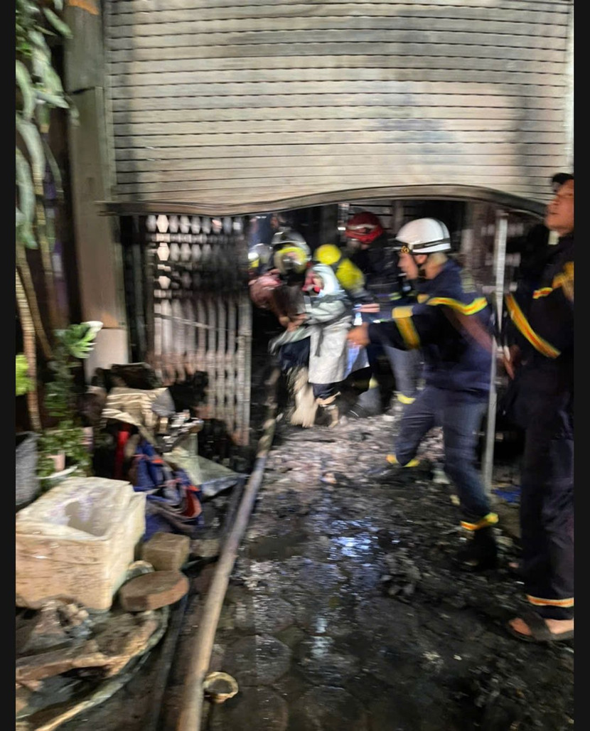 Ngay khi có mặt tại hiện trường hồi 22h20, qua thông tin trinh sát, nhận định đám cháy đang phát triển mạnh tại khu vực mặt trước tầng một nhà 4 tầng (diện tích ngôi nhà khoảng 40m2, hình ống, mặt tiền nhỏ hẹp) với rất nhiều khói, khí độc bao trùm tầng 1 và lan lên các tầng, các gian phòng theo cầu thang bộ bên trong nhà và có người mắc kẹt trong đám cháy, Chỉ huy chữa cháy đã nhanh chóng chỉ đạo 1 mũi trinh sát phá cửa cuốn trước mặt tiền ngôi nhà, mang theo thiết bị bảo hộ cá nhân, bình thở di chuyển lên các tầng phía trên tìm kiếm, cứu nạn cứu hộ người còn mắc kẹt trong đám cháy và 01 mũi triển khai đội hình chữa cháy khu vực tầng 1 và ngăn cháy lan lên các tầng phía trên của ngôi nhà và 2 nhà dân liền kề.