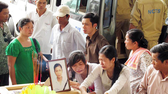 Ngồi cạnh bên gia đình nạn nhân Thu và Hoãn là chồng và con trai của nạn nhân Trần Thị Châu (Kim Liên, Nam Đàn, Nghệ An). Thấy chúng tôi đến động viên và hỏi chuyện, anh Vũ Văn Thông, chồng chị Châu gạt nước mắt, kể: “Vợ tôi đi xuất khẩu lao động sang Nga từ tháng 4-2008. Thi thoảng cô ấy vẫn gọi điện về, còn bảo cuộc sống bên đó khó khăn, lúc có việc lúc không nên khả năng cuối năm nay sẽ về. Nào ngờ…”. Nói đến đây, người đàn ông ôm chặt con vào lòng, bật khóc.