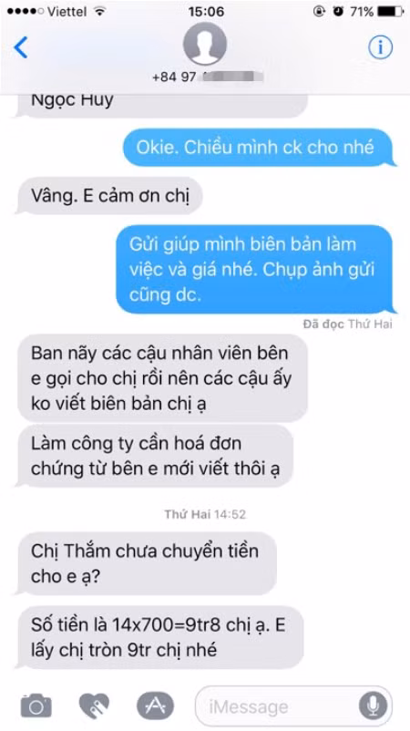 Mặc dù rất bức xúc, chị Thắm vẫn thanh toán đầy đủ ngay sau đó.