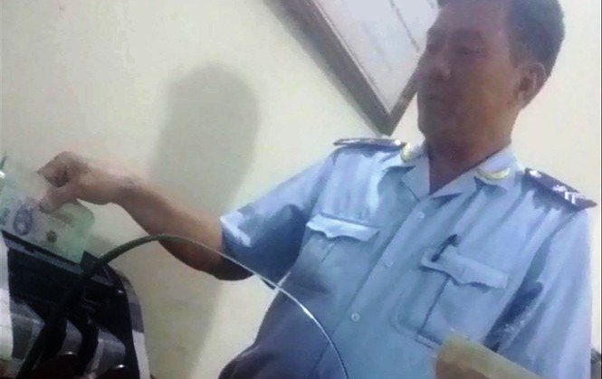 Hình ảnh cán bộ hải quan Cửa khẩu Quốc tế Tây Trang bị tố nhận tiền "làm luật" (Ảnh cắt từ clip trên báo Tiền Phong)