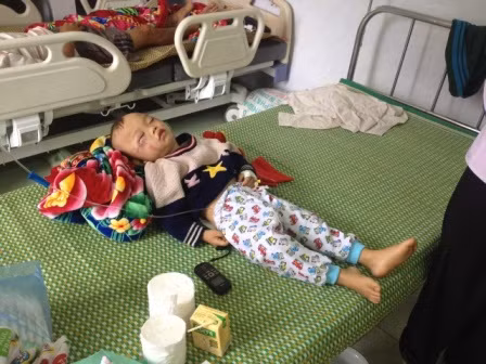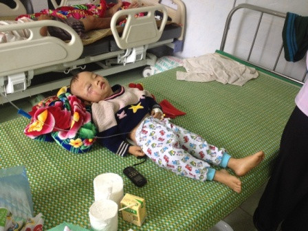 Cháu nhỏ may mắn thoát chết sau vụ lở núi , đang được truyền dịch trong viện