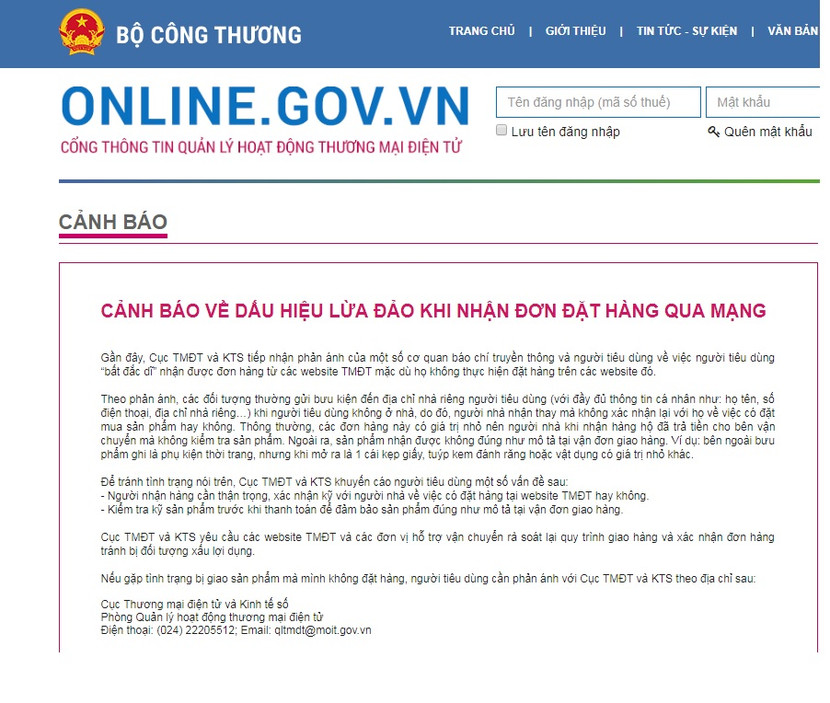 Nội dung cảnh báo sau loạt vụ lừa đảo qua Sendo được Cục TMĐT & KTS đăng tải nhưng không nêu đích danh sàn giao dịch này