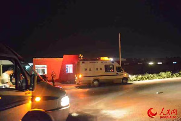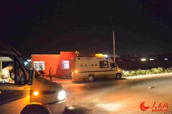 Xe cấp cứu chạy đến hiện trường vụ nổ. Ảnh: People Daily