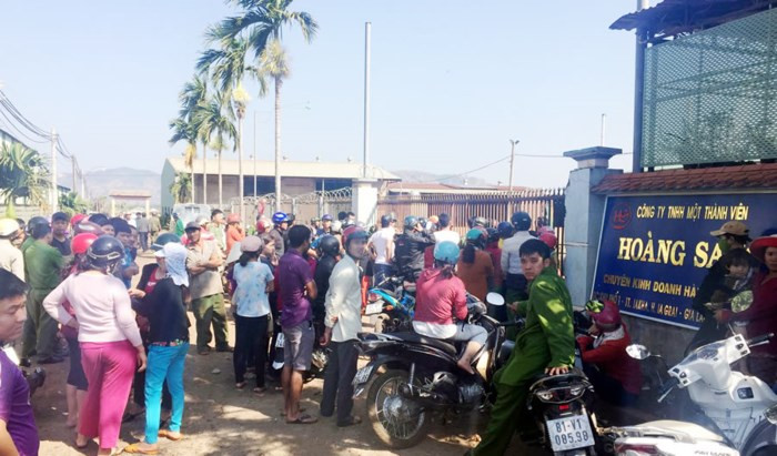 Người dân ở huyện Ia Grai kéo đến trụ sở Cty TNHH MTV Hoàng Sang sau khi Giám đốc tuyên bố vỡ nợ.