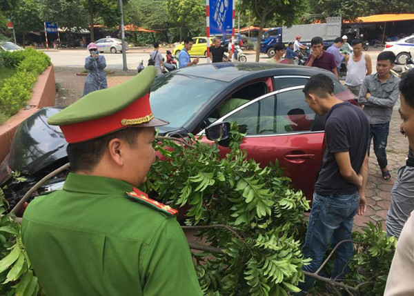 Vào thời điểm trên xe Mazda 3 mang BKS: 30E-861.30 đã tông đổ một cây ven đường rồi lao lên vỉa hè, tiếp tục tông vào lan can của một vườn cây tại chung cư CT1A thuộc địa bàn phường Trung Văn, quận Nam Từ Liêm.