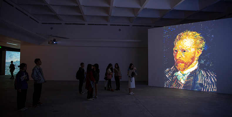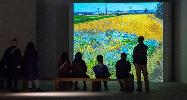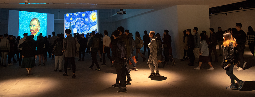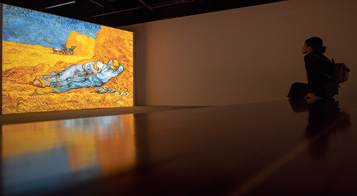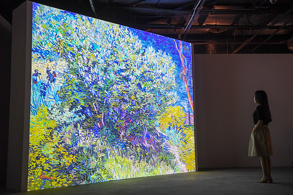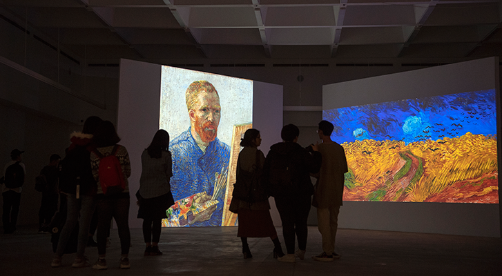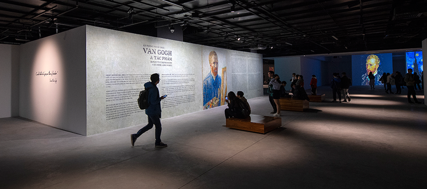 Không gian triển lãm “Ấn tượng phản chiếu: Van Gogh và tác phẩm” tại Trung tâm Nghệ thuật Đương đại Vincom (VCCA). Ảnh: VCCA