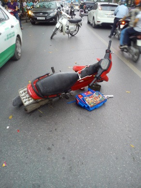 "Tôi đang ngồi uống nước thì nghe thấy tiếng thét liền quay ra, thấy cậu thanh niên nhuộm tóc vàng với cháu bé cùng chiếc xe máy đổ ra đường, còn người phụ nữ thì nằm bất tỉnh, máu chảy lênh láng" - một nhân chứng kể lại.