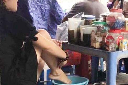 Cũng trong thời gian đó, một đoạn clip được tung lên mạng ghi lại cảnh một cô gái rửa chân trong xô nước dùng để pha trà đá cho khách đã khiến dư luận rất bức xúc. Tuy nhiên theo bà P.T.L - chủ quán trà đá, đây là trò đùa quái ác của nhân viên salon tóc gần đó. Cô gái này (nữ nhân viên của quán salon kia), đã xin bà L được pha nước, rót cho khách và tự dàn dựng, quay clip để “câu like”.