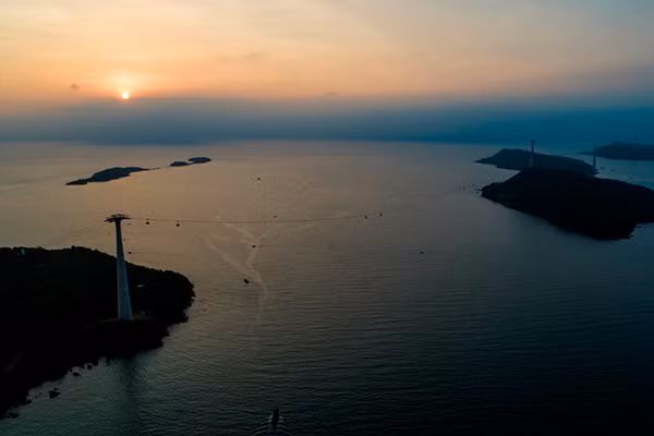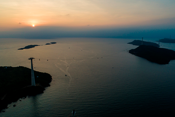 Từ cabin tuyến cáp treo dài nhất thế giới, du khách như bị mê hoặc trong một hành trình khám phá Đảo Ngọc từ trên cao vô cùng thơ mộng và kỳ vĩ. Bức tranh thiên nhiên được sắp đặt diệu kỳ với những mảng màu sống động: xanh lam của trời, xanh ngọc bích của biển, xanh rì của những cánh rừng già và những bãi cát trắng mịn như kem bên dưới sẽ là một trải nghiệm thư thái, lãng mạn đến khó quên trong ngày đầu năm mới. Lẫn trong sắc màu thiên nhiên ấy là những mảng ghép sống động của những làng chài, những nếp nhà bên rặng dừa xanh vi vút, và dàn thuyền đánh cá bập bềnh trên sóng biếc.