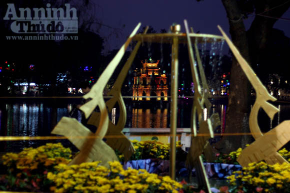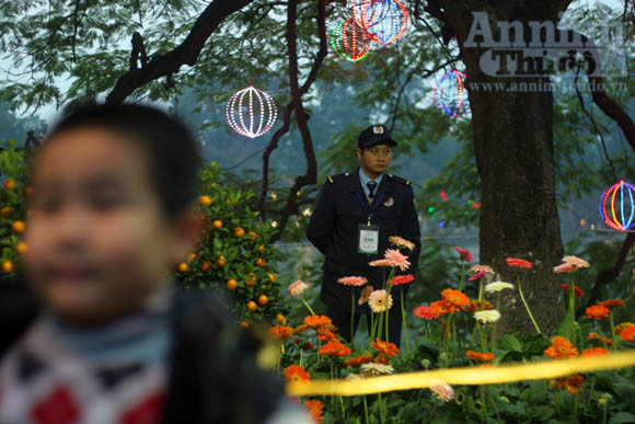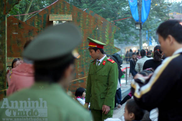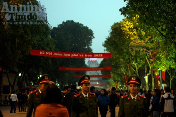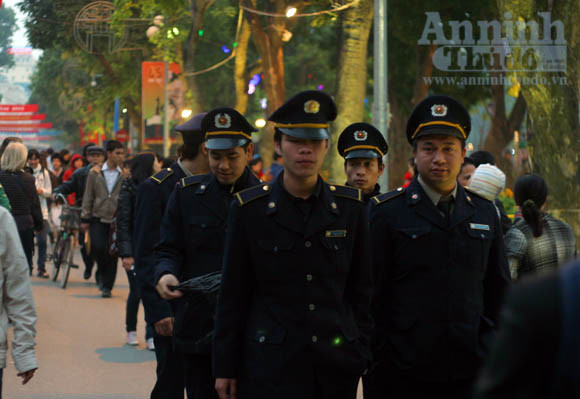 Các chiến sĩ công an làm nhiệm vụ quanh khu vực hồ Gươm