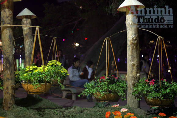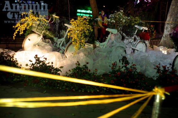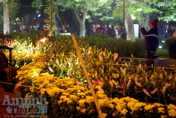 Mỗi luống hoa mặc dù đã có hàng rào nhưng vẫn phải có người canh gác