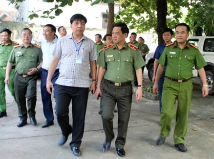 Thiếu tướng Đoàn Duy Khương - Giám đốc CATP Hà Nội cùng lãnh đạo huyện Quốc Oai thăm cơ sở vật chất của CAH vừa được huyện bố trí, sắp xếp