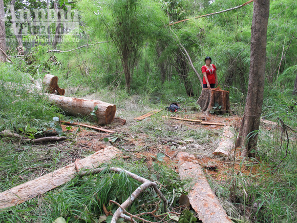 Hiện trường những cây căm xe bị mới bị đốn hạ tại tiểu khu 484