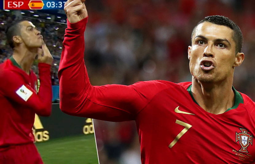 Ở trận hòa 3-3 này, CR7 đã lập một hattrick siêu đẳng vào lưới De Gea. Tuy nhiên, sự chú ý đổ dồn vào anh sau pha lập công đầu tiên ở phút thứ 4. Sau khi đánh bại đối thủ trên chấm 11m, Ronaldo chạy ra đường biên và ăn mừng bằng cách vuốt vuốt lên cằm của mình.