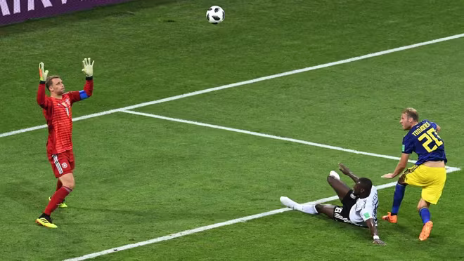 Khi trận đấu bước vào phút bù giờ cuối cùng (90+5), người Đức mới vỡ òa khi ngôi sao "sáng" nhất của họ lên tiếng. Không ai khác, Kroos, người mắc sai lầm dẫn đến bàn thua đầu tiên, đã chuộc lỗi bằng cú sút phạt tuyệt đẹp không cho thủ môn Thụy Điển cơ hội cản phá nào. 2-1 cho Đức một cách nghẹt thở, và đây cũng là tỉ số cuối cùng của trận đấu này.