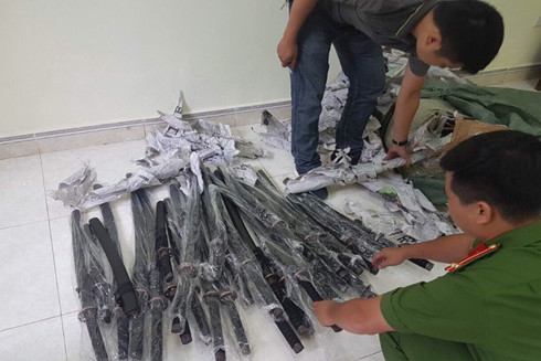 Khi phát hiện lực lượng Công an, các đối tượng đã vứt bao hàng bỏ chạy, tổ công tác đã thu giữ số hàng vô chủ, tiến hành kiểm đếm gồm 54 thanh kiếm Nhật do Trung Quốc sản xuất.