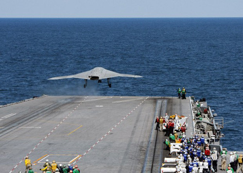 Máy bay không người lái X-47B, có thiết kế tương tự như máy bay ném bom tàng hình B-2 nhưng có kích cỡ nhỏ hơn, chỉ tương đương một chiếc máy bay chiến đấu F/A-18 Super Hornet, đã thực hiện pha cất cánh thành công đầu tiên trên tàu sân bay USS George H. Bush hôm 14-5 cũng tại Đại Tây Dương.