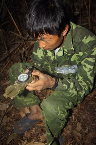 Nhóm tuần rừng chuẩn bị khảo sát số lượng cá thể vượn đen tuyền