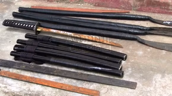 Hung khí thu được của hai băng nhóm đánh chém nhau tại ngã ba đường Hàm Nghi – Nguyễn Huệ, TP Đông Hà