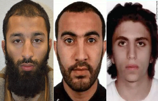3 thủ phạm chính trong vụ tấn công khủng bố London Khuram Butt (trái), Rachid Redouane (giữa) và Youssef Zaghba