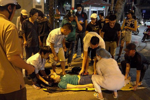 Người dân đã gọi cấp cứu 115 tới sơ cứu và đưa cô gái vào bệnh viện.