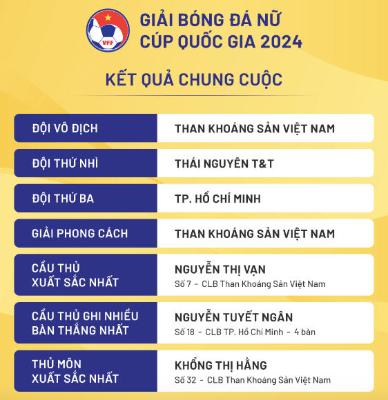 | Than KSVN vô địch Cúp quốc gia nữ 2024 |