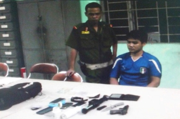 Tại con hẻm trên, khi thoáng thấy bóng dáng cảnh sát, đôi nam nữ đi trên xe máy chuẩn bị rời hiện trường với vẻ khả nghi. Tổ công tác yêu cầu kiểm tra hành chính. Qua kiểm tra, cảnh sát phát hiện trong cốp xe đôi nam nữ có một số công cụ hỗ trợ như 1 roi điện, 1 con dao dài 20 cm và 1 khẩu súng (giống súng K54) là loại bắn đạn nhựa do Trung Quốc sản xuất.