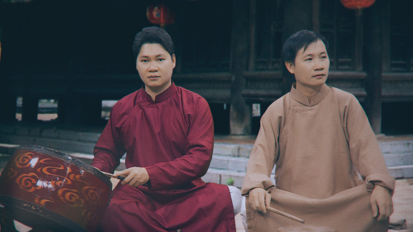 Hình ảnh mãi đình truyền thống được chọn làm hình ảnh nền cho bài xẩm