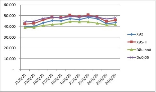 Đối với quỹ bình ổn giá xăng dầu, Liên bộ quyết định thực hiện trích lập quỹ đối với xăng E5RON92 ở mức 50 đồng/lít (kỳ trước là 100 đồng/lít), xăng RON95 trích lập ở mức 200 đồng/lít (bằng kỳ trước), dầu diesel ở mức 600 đồng/lít (kỳ trước 800 đồng/lít), dầu hỏa ở mức 300 đồng/lít (bằng kỳ trước) và dầu mazut trích lập ở mức 300 đồng/kg (kỳ trước 100 đồng/kg).