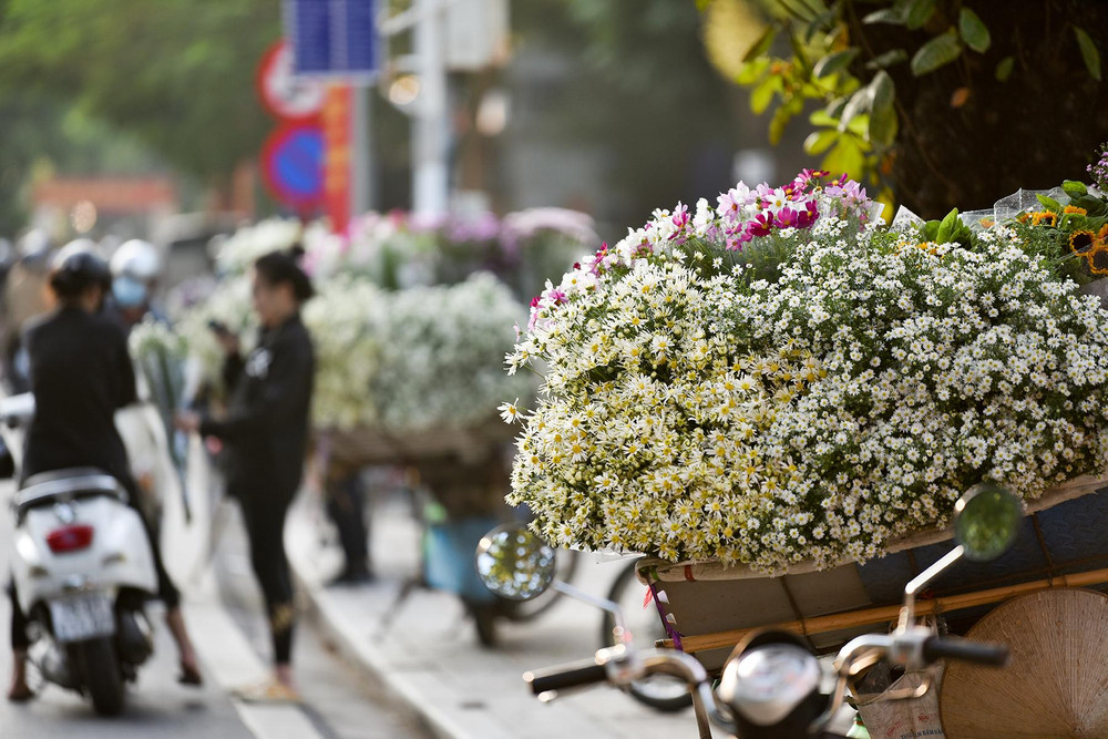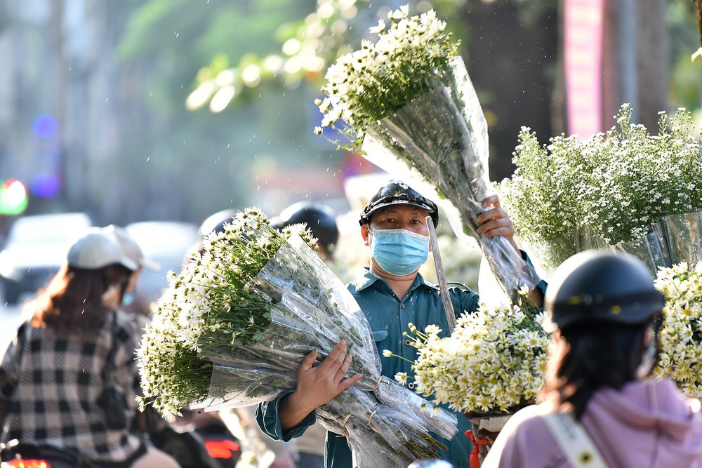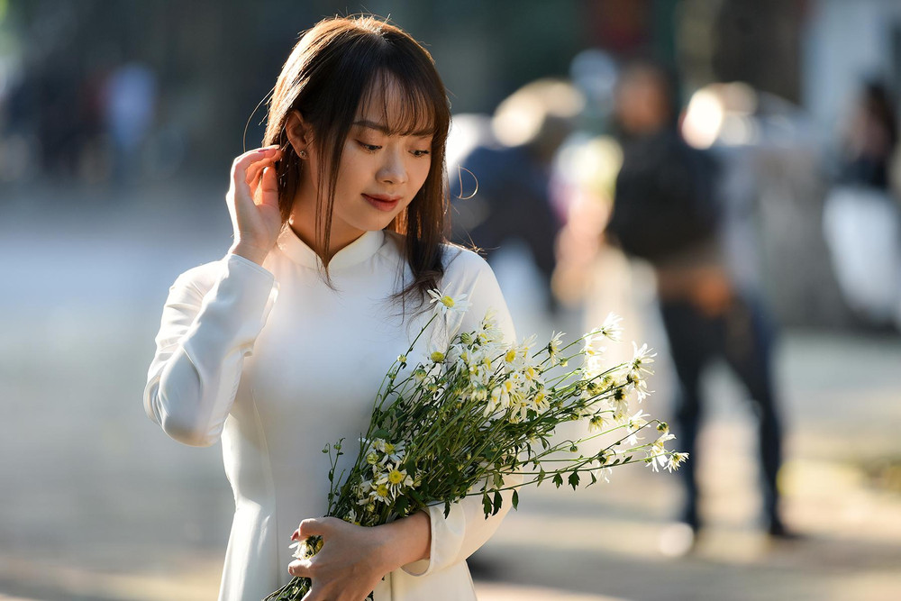 ANTD.VN - Những ngày này, phố phường Hà Nội như đẹp hơn khi những gánh hàng hoa chở đầy cúc họa mi xuống phố. Dù giá khá cao ở mức 100-150.000 đồng/1 bó người dân vẫn tranh thủ mua để chụp ảnh. Những ai đã đến Hà Nội lúc này, thật không khỏi bồi hồi xao xuyến khi bắt gặp hình ảnh những thiếu nữ áo dài trắng tinh khôi mỉm cười rạng ngời bên những đóa cúc họa mi nhỏ xinh, trắng muốt...
