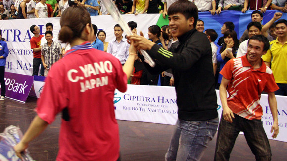 Đó là tình huống cặp VĐV của Nhật Bản sau khi vô địch đôi nữ đã ném vợt lên khán đài tặng khán giả thay lời tri ân, nhưng khi vợt vừa ném lên nhiều khán giả đã lao vào giành giật, thậm chí ẩu đả để đoạt vợt. Xấu xí hơn là hình ảnh một khán giả đã lao vào sân, cướp chiếc vợt trên tay Yano Chiemi trong sự ngỡ ngàng của nữ VĐV Nhật Bản này.