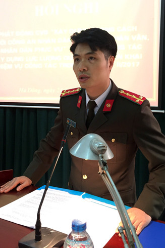 Thay mặt Đảng ủy BCH - CAQ Hà Đông, Đại úy Bùi Nhật Quang, Phó trưởng CAQ báo cáo sơ bộ kết quả công tác Đảng, xây dựng lực lượng quý I-2017 và công tác trọng tâm của quý II-2017, đồng thời phát động cuộc vận động “Xây dựng phong cách người CAND bản lĩnh, nhân văn, vì nhân dân phục vụ”.