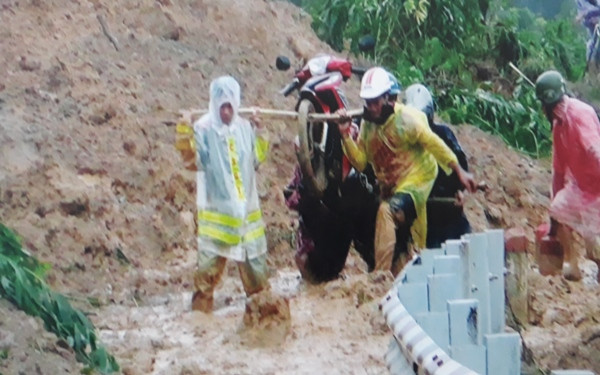 Lực lượng Công an giúp đỡ người dân ở vùng gặp thiên tai