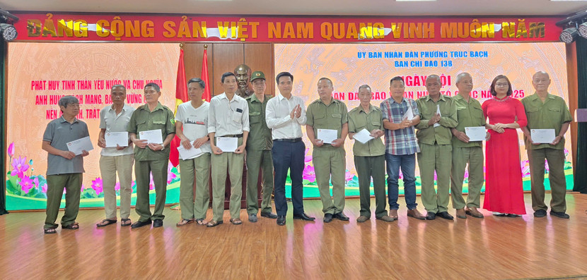 Nhân dịp này, UBND phường Trúc Bạch và Ban chỉ đạo 138 phường đã trao tặng quà cho các gia đình khó khăn trên địa bàn và trao khen cho các tập thể, cá nhân có thành tích xuất sắc trong phong trào toàn dân bảo vệ an ninh Tổ quốc.