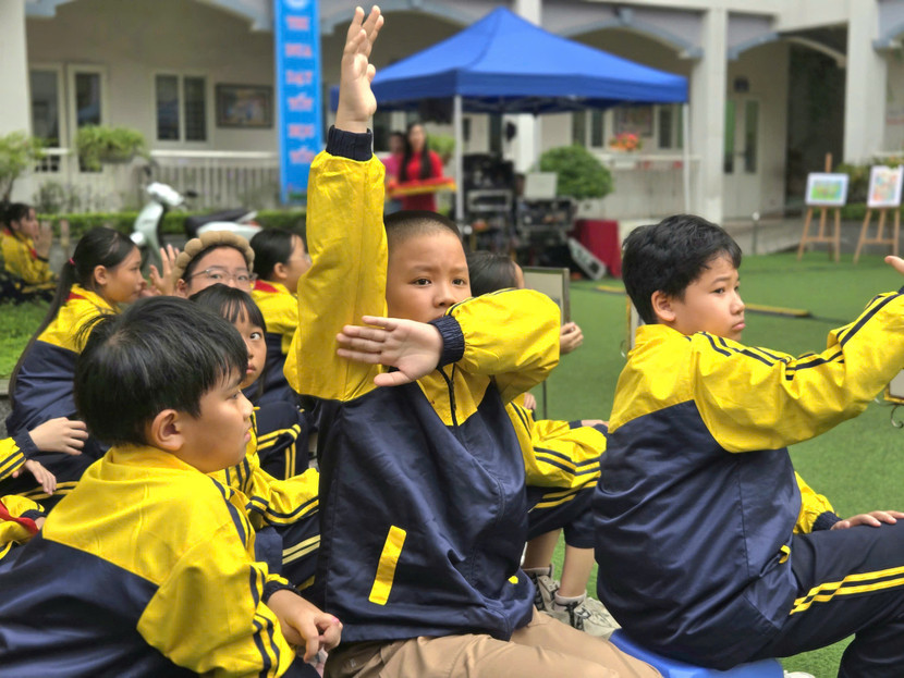 | Những cánh tay hào hứng của các em học sinh trường Tiểu học Ngọc Thụy |