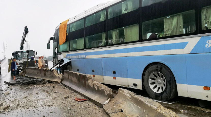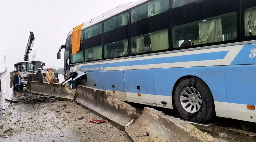 Cú va chạm đã khiến 2 chiếc xe dính vào nhau, kéo hỏng một đoạn dài dải phân cách giữa đường. Rất may, vụ tai nạn không có thương vong về người, nhưng hành khách hoảng sợ. Vào thời điểm xảy ra tai nạn, trên xe con chở 5 người.