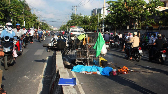 Thông tin ban đầu, vào thời điểm trên, ông Nguyễn Thùy Vũ (SN 1967, quê Vĩnh Long; tạm trú P. Đông Hưng Thuận, Q.12) điều khiển xe ba gác lưu thông trên đường Phan Văn Hớn, hướng từ Trường Chinh ra Quốc lộ 1A.