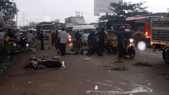Cú va chạm khiến cả người và xe ngã lăn trên đường, người cầm lái văng ra giữa làn đường ô tô. Đúng lúc đó, chiếc xe tải BKS 60C - 101.55 chạy phía sau lao tới. Dù tài xế cố gắng xử lý nhưng không kịp, bánh trước bên phải xe cán qua khiến người đàn ông tử vong tại chỗ.