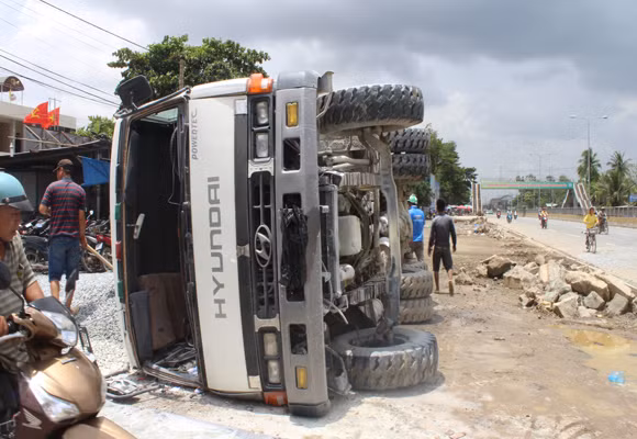 Tại hiện trường, xe ben lật ngang, đầu xe bị bể, đá từ trên xe đổ xuống tràn ra mặt đường. Tài xế (chưa xác định tên tuổi) bị thương nặng, được những dân đưa đi bệnh viện cấp cứu..