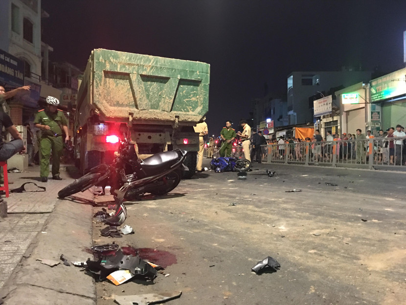 Theo một số người dân chứng, có nhiều người bị thương nặng đã được người dân đưa đi cấp cứu. Ghi nhận tại hiện trường, có khoảng 3 xe máy bị cuốn vào gầm xe ben, 2 xe máy nằm bên ngoài. Tất cả xe máy đều vỡ nát, hư hỏng.