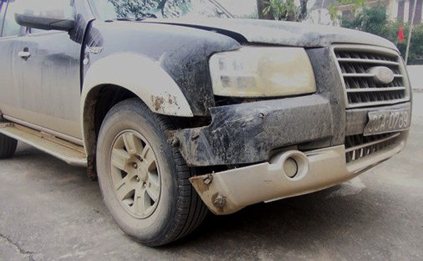 Chiếc xe của Hạt kiểm lâm Hà Tĩnh bị đâm khiến hư hỏng phần đầu xe