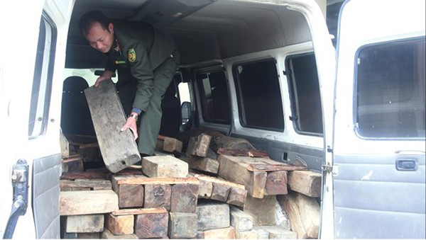 Cả một xe toàn gỗ lim lậu đã bị bỏ lại hiện trường
