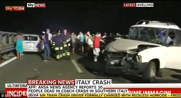 Cơ quan thông tấn xã của Italia ANSA dẫn lời phóng viên của họ cho hay, hiện trường nằm ở một khu vực nông thôn gần Avellino và họ nhìn thấy khoảng 30 thi thể được phủ vải gần chiếc xe. Cảnh sát giao thông cho biết, chiếc xe chở khách đã đâm vào một vài chiếc ô tô đang di chuyển chậm do tắc đường trước khi lao xuống đường cao tốc.