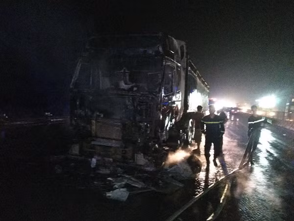 Sau 30 phút, đám cháy cơ bản được khống chế và dập tắt. Theo ghi nhận, phần đầu xe container bị hư hỏng hoàn toàn. Nguyên nhân vụ cháy đang được điều tra làm rõ.