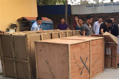 Chiều ngày 10-12, lực lượng chức năng tiến hành kiểm đếm số tang vật gồm bóng đèn, thiết bị vệ sinh, đồ nội thất … trên các xe ô tô để lập hồ sơ xử lý.